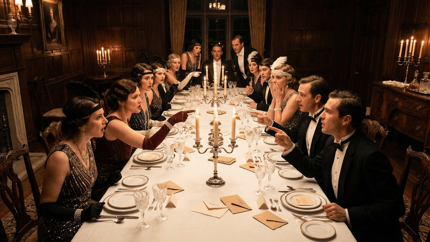 The evening needs a host — typically the person who organised the event — whose job is not to perform but to manage. They keep guests in character when people start slipping back into being themselves. They keep the action moving when the conversation stalls. They read the room and call the endgame when all the secrets are out. At that point they invite the murderer to confess, then ask the group to vote for best male character, best female character and best dressed. In fifteen years of running these evenings, those three votes have produced some of the most hotly contested debates of the night.